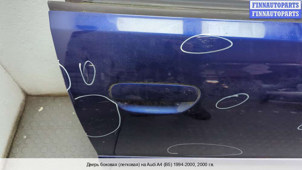 Компания FINNAUTOPARTS занимается продажей контрактных (б/у, бывших в употреблении) запчастей для иномарок. В нашей компании продаются только оригинальные запчасти из Европы, Японии и Кореи, которые не имеют пробега по РФ. Если вы хотите приобрести боковую дверь (передняя правая) для а/м Ауди А4 Б5, смело обращайтесь в нашу компанию. Все наши менеджеры — профессионалы своего дела, и с удовольствием помогут вам купить запчасти, в том числе, боковые двери передние правые, на Audi A4 (8D, B5) и другие автомобили.